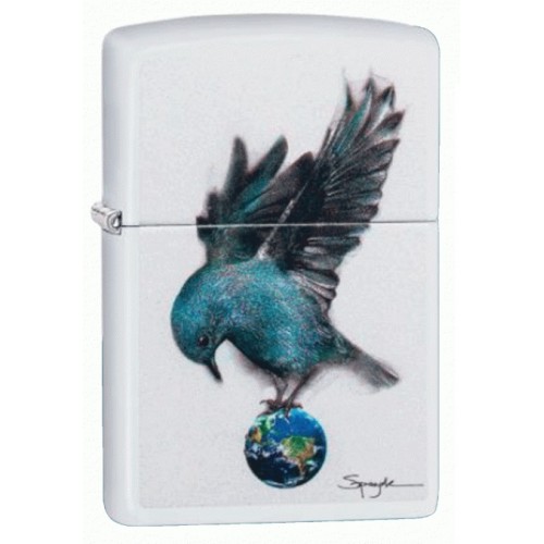 Zippo lighter with bird over the earth design, by artist Steven Spazuk