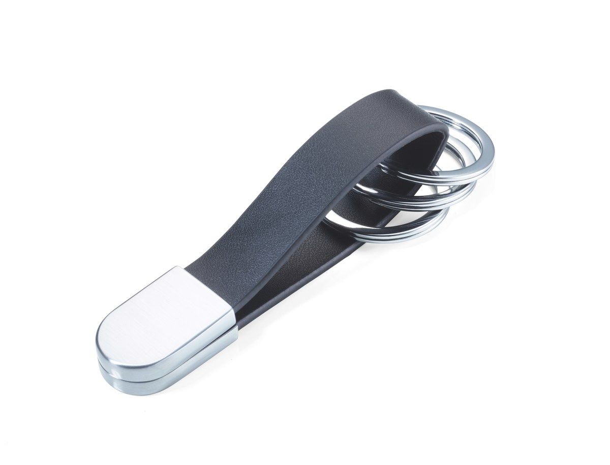 - Contains 3 rings and a metal lock for attaching the key to the leather loop.